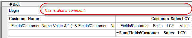 For example when you have put controls behind each other and depending on a certain expression you change the visibility. In that case, when a modification needs to be done, the developer might not be aware that the change is also required in the hidden object. Adding a comment in the RDLC design might make this more clear.